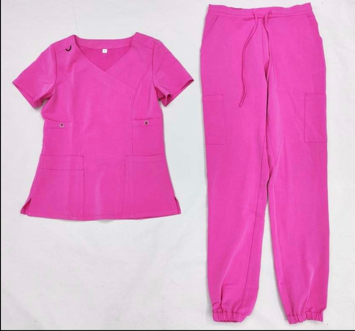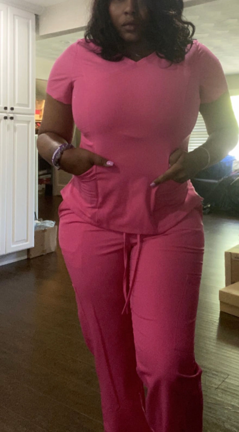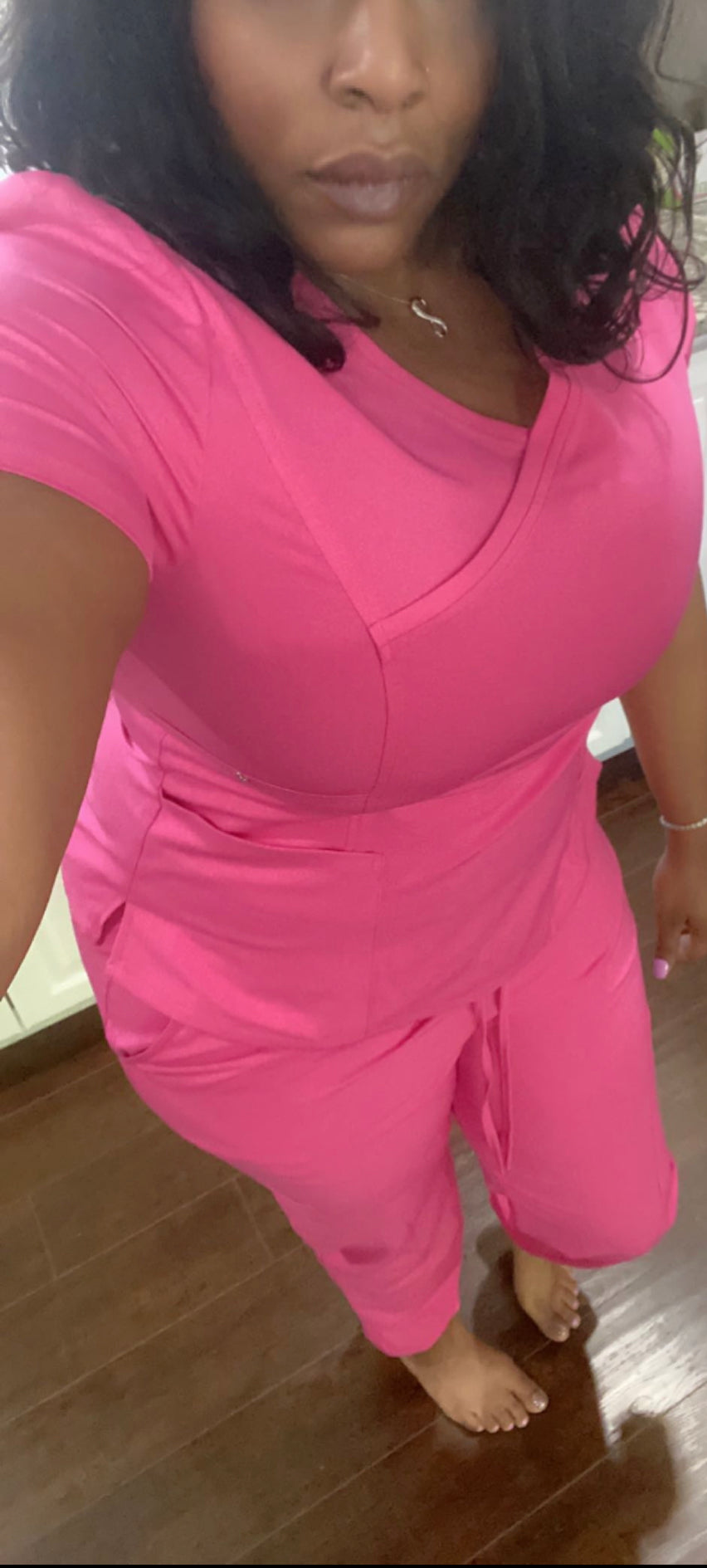 This contemporary modern 2 piece Scrub Jogger set is designed with comfortability in mind. It has a stylish and active wear appeal . It is drawstring in the front, elastic in the back. Designed especially for my bottom half thick and luscious women. Made with 72% Polyester, 16% Rayon, 7% organic hemp, and 5% spandex. It brings out the diva for the new age active healthcare workers.